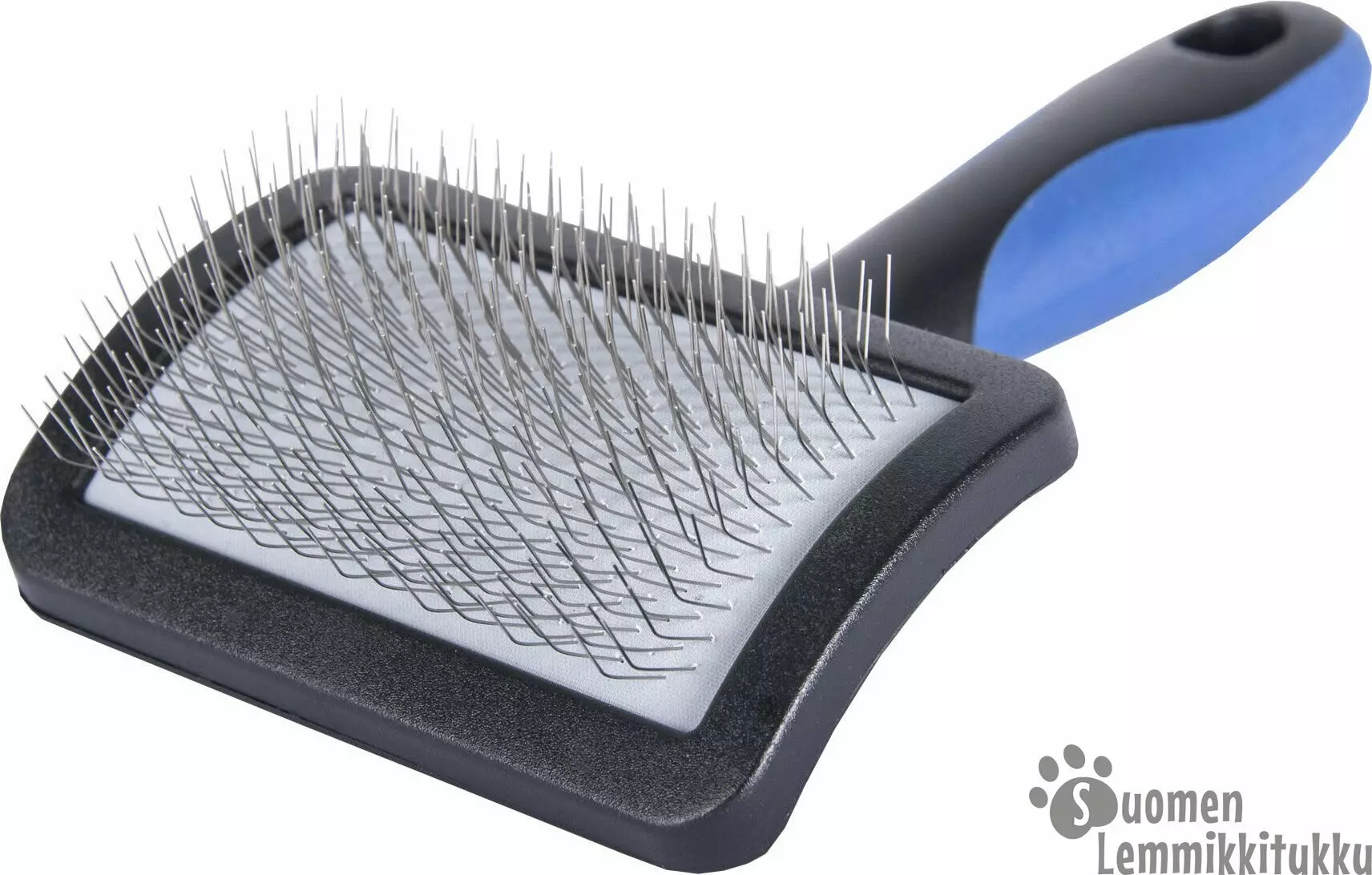 Show Tech karsta pehmeillä metalliharjaksilla sopii erinomaisesti takkujen selvittämiseen ja pohjavillan ja irtokarvojen poistamiseen hellävaraisesti. Karstan hieman joustava kumityyny ja kaareva muoto pehmentävät ja helpottavat käyttöä. Varressa on grippinta helpottamaan pitävää otetta.