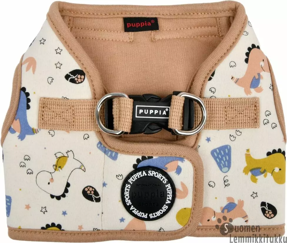 Puppian takkivaljaat ovat perinteisiä valjaita tukevammat ja niissä on kiinnitys tarralla selän päältä. Valjaat on todella helppo pukea päälle: vedä tassut valjaiden tassuaukkojen läpi ja kiinnitä tarralla selän päältä. Selän päällä on lisäksi vielä erikseen pistolukkokiinnitys sekä metalliset renkaat talutinta varten.