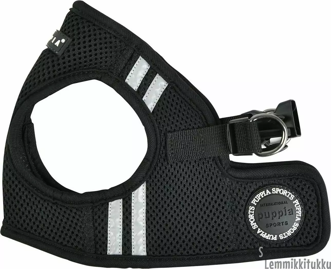 Puppian takkivaljaat ovat perintesiä vajaita tukevammat ja niissä on kiinnitys tarralla selän päältä. Valjaat on todella helppo pukea päälle: vedä tassut valjaiden tassuaukkojen läpi ja kiinnitä tarralla selän päältä. Selän päällä on lisäksi vielä erikseen pistolukkokiinnitys sekä metalliset renkaat talutinta varten. Valajisden molemmilla sivuille on heijastinraidat.