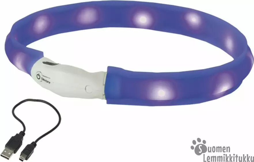Silikonista valmistetulla leveällä Visible LED-valonauhalla koirasi näkyy hyvin. Leveä nauha sopii ja näkyy paremmin etenkin pitkäkarvaisilla koirilla. Visible-pantaa on saatavana kolmea eri kokoa.
