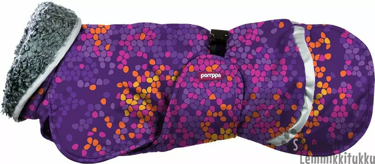 Pompan ToppaPomppa on muhkea ja hyvin peittävä lämpötakki koiralle. Sen vedenpitävä pintakangas ja pehmeä teddyvuori sekä hyvin eristävä vanutäyte pitävät koiran lämpimänä kovallakin pakkasella. ToppaPomppa on suunniteltu suojaamaan koko koira.Takin pehmeät materiaalit, reilu mitoitus ja suuri takakappale varmistavat, että koira pysyy lämpimänä myös paikallaan ollessa ja autossa odottaessa.
