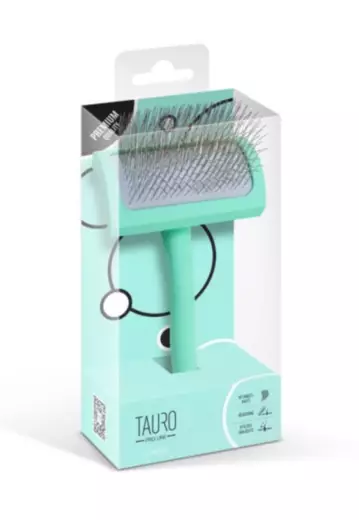 Tauro Pro Line premium-karsta on asiantuntevasti suunniteltu helpottamaan lemmikkieläinten harjausta. Harjassa on ergonomisesti muotoiltu suorakulmainen muoto ja se on erittäin kevyt, joten kädet eivät väsy harjauksen aikana. Pehmeä ja joustava tyyny mukautuu lemmikkisi ihoon, kun taas 25 mm:n pituiset kaarevat ruostumattomasta teräksestä valmistetut piikit haravoivat tehokkaasti turkin läpi, poistavat kuolleet karvat ja karvapörröt sekä hierovat lempeästi verenkiertoa ja edistävät karvan kasvua.