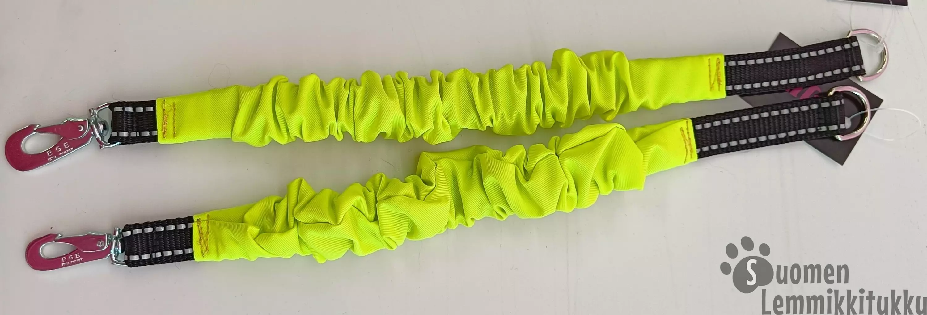 Nauha on lujaa nylonia ja palassa on metallinen BGB-lukko. Joustopalan voi liittää mihin tahansa taluttimeen, kaulapantaan