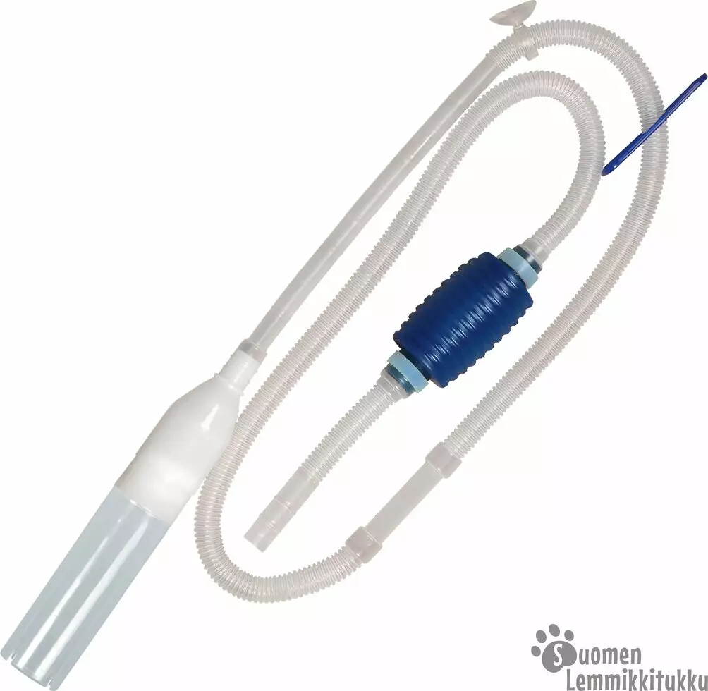 Voidaan käyttää myös hienohiekkaisen pohjan puhdistamiseen kunhan lappo-osaa ei upoteta hiekkaan (hiekka saattaa imeytyä muuten pois akvaariosta).
