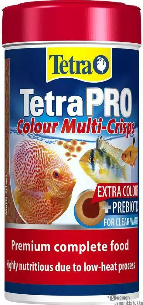 TetraPro Colour Multi-Crisps tuo aivan uuden standardin kalojen ruokintaan. Laadukas täysrehu valmistetaan hellävaraisesti matalalla lämmöllä. Tämä erityinen valmistusmenetelmä antaa TetraPRO Colour Multi-Crisps -ruoalle erittäin korkean ravintoarvon. Tämä uudenlainen hiutaleruoka sisältää runsaasti karotenoideja, jotka vahvistavat kalojen luonnollisia värejä. Ne myös imevät vähemmän vettä kuin normaali hiutaleruoka, mikä lisää ravintoaineiden määrää tilavuutta kohti.